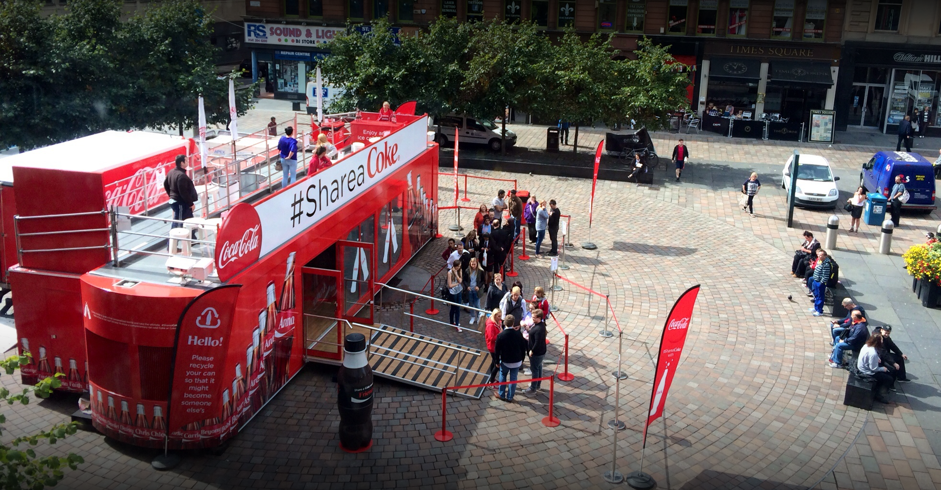 Kampaň odstartovala v Austrálii v roce 2011 a rychle se šířila po zbytku světa. „Share a Coke Tour“ pak přenesla celou myšlenku z regálů do ulic – obří červený kamion objížděl města, zastavoval u obchodních center, festivalů a univerzit, kde si lidé mohli nechat na místě vytisknout vlastní plechovku nebo láhev se jménem. Každá zastávka se tak změnila v mini-event se zónami pro focení, hudbou a okamžitým sdílením na sociálních sítích.